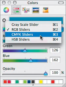 3. | Click the Color Sliders button, and then choose CMYK Sliders from the pop-up menu.