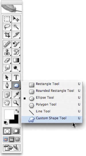 | While Photoshop is best known as a pixel-based (or raster) program, it does have a respectable set of vector drawing tools. Vector graphics are made up of mathematically defined lines and curves. Vector graphics are resolution-independent, as they can be scaled and repositioned with no loss of quality. Vector graphics are a good choice for creating shapes (such as rectangles, circles, or polygons) within your Photoshop document. The added benefit to using the drawing tools is that you can then scale the shapes and modify the design while still maintaining a crisp image. Choosing the Right Drawing Tool Photoshop offers six shape tools. They can be used to create vector shapes, vector paths (which can be used to make a selection), or raster shapes. The following list explains how to change how the shape tools work:  Rectangle tool: The Rectangle tool draws rectangles; if you hold down the Shift key, it draws squares. Rounded Rectangle tool: The Rounded Rectangle tool is well suited for drawing buttons for Web sites. Adjust the Radius setting to modify the amount of curvature. Ellipse tool: The Ellipse tool draws ellipses; if you hold down the Shift key, it draws circles. Polygon tool: The Polygon tool creates polygons. The fewest number of sides a polygon can have is three (which is a triangle). The most complex polygon you can create is a hectagon (a 100-sided figure). Enter the number of sides in the Options bar. Additionally, the Polygon tool can be used to create stars by clicking the Geometry Options button in the Options bar. Line tool: The Line tool draws lines. Specify a thickness in the Options bar. The line can be between 1 and 1000 pixels in width. You can also choose to add arrowheads by clicking the Geometry Options button in the Options bar. Custom Shape tool: The Custom Shape tool is very versatile. There are several shapes built into Photoshop. These can be extremely useful during the design process. To view your loaded shapes, click the drop-down Custom Shape Picker. Additional shapes can be loaded by clicking the submenu of the Custom Shape Picker. Choose from the built-in libraries or load more. Loading Custom Shapes Thousands of free shapes are available to download for Photoshop. An Internet search using the keywords "Photoshop," "Free," and "Custom Shapes" returns plenty of great results. You can choose to load these custom shapes temporarily, or add them to your preset list. Temporary Load 1. | From the Custom Shape Picker, click the submenu.