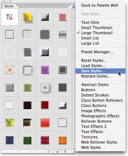 You'll find these and 22 other styles in the UAP Styles set on the DVD.  | 3. | If you need more looks, click the Styles palette submenu. You'll find several options built into Photoshop. When you select a new set of styles from the Preset list, you are presented a choice: