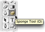 | 4. | Select the Sponge tool (O) from the Toolbox. Adjust the brush to a large size with soft edges. Set the flow to a lower value such as 20% and the mode to Desaturate. This will gently soak up the color in the oversaturated areas.