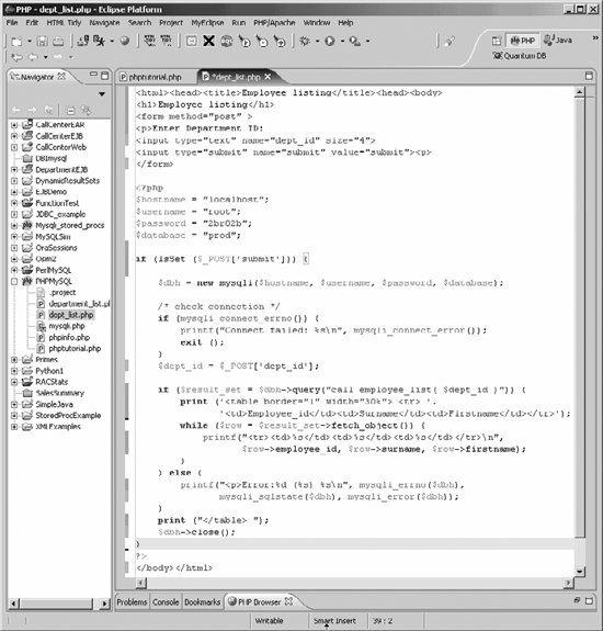 Figure 2-19. Sample PHP program calling a stored procedure