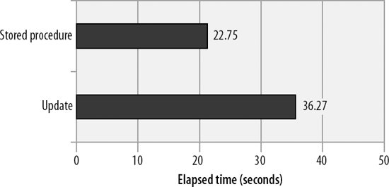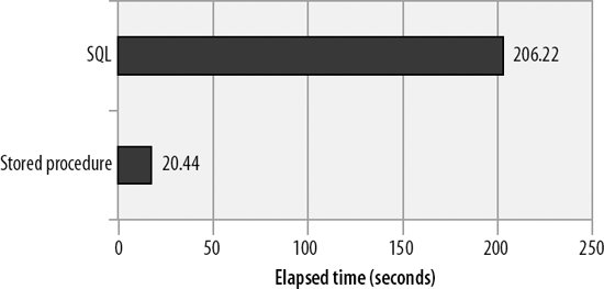 The stored program is significantly faster than the standard SQL solution. Figure 22-3 shows the elapsed time for the two solutions.