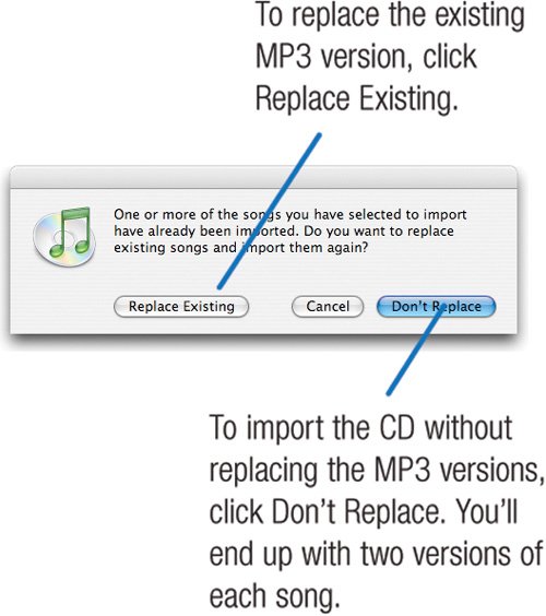 Converting from MP3 to AAC and Apple Lossless iTunes can convert existing MP3s to AAC, but you'll lose quality in the process. That's because both AAC and MP3 are lossy formats: each discards audio information in order to save disk space. Thus, when an MP3 file is compressed with AAC, the lossiness is compounded. Bottom line: to take advantage of AAC's space savings, re-rip your original CDs instead of recompressing existing MP3s. This re-ripping requirement also applies if you want to take advantage of the Apple Lossless encoder. You can't convert an MP3 (or an AAC) file into Apple Lossless and gain the quality benefits of the latterthe sonic damage has already been done. iTunes has some smarts that make re-ripping less laborious: if you re-rip a CD that iTunes already has in its library, iTunes tells you that the songs have already been imported and asks if you want to import them again. Thus, you're spared from having to rebuild your playlists, retype any song information, or manually delete your old MP3s. Note If you've edited a song's informationchanged its name or that of the artist or album as described on page 28 iTunes won't recognize that you're importing it again, and you'll end up with two copies of the same song. To avoid this, make the same edits before you import the CD, or edit the song information of the existing MP3s to match that of the audio CD. Or just make a mental note to delete the old MP3 files after re-ripping.  |