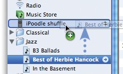 | iPod shuffle is something completely different. It lacks a display and click wheel. You can navigate to the next and previous song, but you can't skip around within songs or jump to a specific song in a playlist or album. And forget about storing photos, contacts, and calendar information. But where iPod shuffle shines is in your pocketand pocketbook. This is a truly tiny music playeryou've carried bigger packs of chewing gum. It's also the least expensive iPod, starting at $69. And true to its name and marketing campaign, iPod shuffle embraces the random world of shuffle discussed on page 76. iTunes has a special Autofill feature that will pack your iPod shuffle with a random selection of tunes. You can, of course, also take the reins yourself and manually copy specific songs, albums, and playlists. iPod shuffle at a Glance iPod shuffle debuted in January 2005 in two capacities: 512MB (about 120 songs) and 1GB (about 240 songs). You can connect an iPod shuffle to any USB port that provides sufficient power. For much faster music transfers, use a USB 2.0 port, if your Mac provides one (all current Macs do).  Filling your iPod shuffle Unless you have a ridiculously small iTunes library, you won't be able to fit all your music into an iPod shuffle. That's where the Autofill feature comes in: it lets you easily corral a collection of songs into your shuffle. iPod shuffle Tips Keeping the fill. Like what Autofill has come up with? You can save it as a standard playlist: select any song in the Autofill list, and then choose Select All from the Edit menu ( -A). Finally, choose New Playlist from Selection from the File menu. Autofill based on playlists. When you simply Autofill your shuffle from your main library, you're likely to end up with a lot of songs you might not have chosen otherwise. When you want more control over Autofill, choose a specific playlist from the Autofill From pop-up menu. Indeed, you might want to create some smart playlists that allow you to Autofill based on genreclassical, jazz, rock, and so onor on other key criteria, such as an artist's or composer's name. (For details on smart playlists, see pages 5053.) Self-serve fill-up. Autofill is an easy way to sling some songs onto a shuffle, but you might prefer more control over what gets copied. No problemfill your shuffle yourself. You can copy songs directly to the shuffle by simply dragging them from your iTunes library to the iPod shuffle in the Source list. Drag songs one at a time, or use the selection techniques described on page 44. You can also copy an entire playlist by simply dragging it to the shuffle.  Middle ground. You can combine the convenience of Autofill with the control of manual management. If you like most of what Autofill has come up with, just delete the tunes you don't want on your shuffle: be sure that your shuffle is selected in the Source list, then select tunes you don't want on the shuffle and press the Delete key on your keyboard. Then, add some additional tunes if you like. Or take the opposite approach: start off by manually adding the songs and playlists that you want, and then click Autofill to finish the job. Take it from the top. When your iPod shuffle is in play-in-order mode, you can jump to the first song in the shuffle's playlist by pressing the Play/Pause button three times. For more iPod shuffle tips, see page 102. |