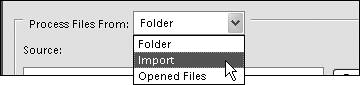 - To select images stored in a digital camera, scanner, or PDF, choose Import; then select the appropriate source from the From drop-down menu (Figure 11.16). The choices in the From pop-up menu will vary depending on the hardware connected to your computer.