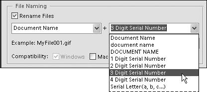 Figure 11.17. You can choose from a number of file naming options to arrange your images in consecutive order.