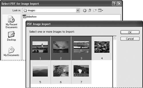 Figure 11.21. When you import a batch of images from a PDF file, you first select the PDF and then select the files you want to import.