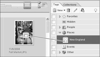 | 2. | From the Tags pane, drag a tag onto any one of the selected photos (Figure 13.38).