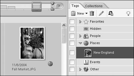 Figure 13.37. When you use a tag for the first time, the photo you attach it to serves as the source for the tag icon.