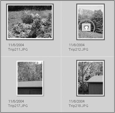 Figure 13.38. You can select multiple photos, and then tag them all at once by dragging a tag icon over just one.