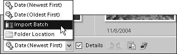 | To attach a tag to an import batch or folder 1. | From the Arrangement drop-down menu in the lower-left corner of the Photo Browser, choose either Import Batch or Folder Location (Figure 13.39).