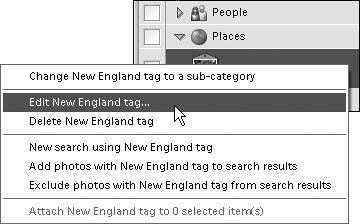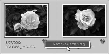 - Right-click on the category icon below the photo thumbnail and select Remove (name of tag) tag from the small pop-up menu (Figure 13.45).
