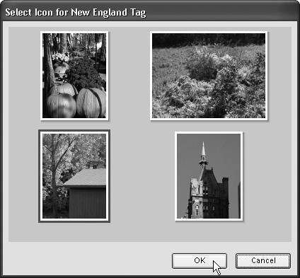 | 5. | In the Select Icon for (name of tag) Tag window, click to select a photo thumbnail and click OK (Figure 13.49).