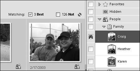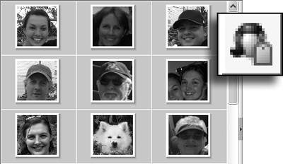 Figure 13.56. Any tags that you assign in the Face Tagging window are automatically assigned to the proper photos in the Organizer's main Photo Browser.