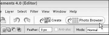 Figure 2.9. The Photo Browser button on the shortcuts bar launches the Photoshop Elements Organizer.