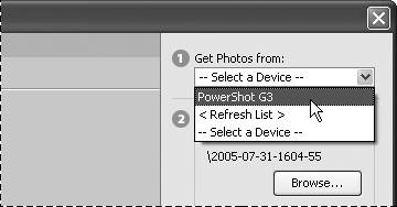 | 4. | From the Get Photos from drop-down menu, choose your camera (Figure 2.11).