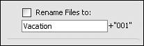 For example, your camera's default naming scheme is probably something like "IMG_1031.JPG." With the Rename Files to option selected, you can name and number a set of photos "Vacation," for instance. Then your photos will automatically be saved and named "Vacation001.jpg," "Vacation002.jpg," and so on.