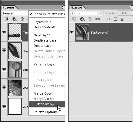 | 2. | From the palette menu, select Flatten Image.