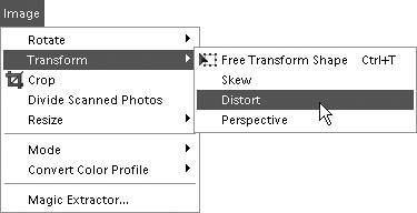 To distort a layer image 1. | Click a layer in the Layers palette to make it active. From the Image menu, choose Transform; then choose Skew, Distort, or Perspective (Figure 5.48).