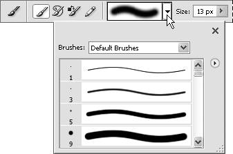 Once you've selected a brush, you can use it at its predefined size, or you can resize it using the brush Size slider on the options bar (Figure 8.44).