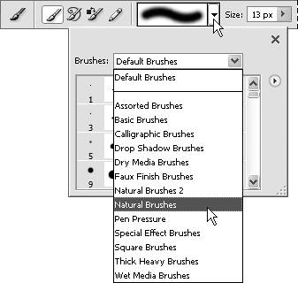 Figure 8.43. The Brushes drop-down menu gives you access to a variety of brush sets.