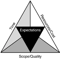 Figure 1.2. Competing project demands (traditional model). This figure summarizes the relationships between the natural competing demands of projects.