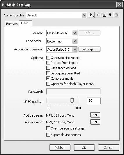 | 4. | Select Flash Player 6 in the Version drop-down list (Figure 8.21).