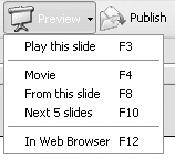 | 11. | Click the arrow beside the Preview button on the Main toolbar and select "From this slide." (Figure 8.22) Alternatively you can press the F8 key.
