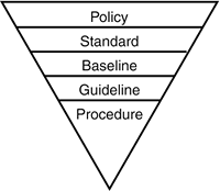 Policies are the top tier of formalized security documents. These high-level documents offer a general statement about the organization's assets and what level of protection they should have. Well-written policies should spell out who's responsible for security, what needs to be protected, and what is an acceptable level of risk. They are much like a strategic plan because they outline what should be done but don't specifically dictate how to accomplish the stated goals. Those decisions are left for standards, baselines, and procedures. Security policies can be written to meet advisory, informative, and regulatory needs. Each has a unique role or function.