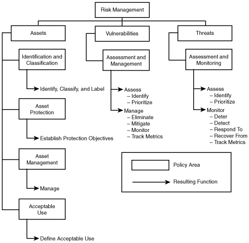 - Risk Management Basis Creation of the organization's information security policies is driven by risk management and the mitigation of risks to threats and vulnerabilities. This aligns the IT security architecture and framework to the IT infrastructure's defense-in-depth strategy to combat against threats and vulnerabilities.
