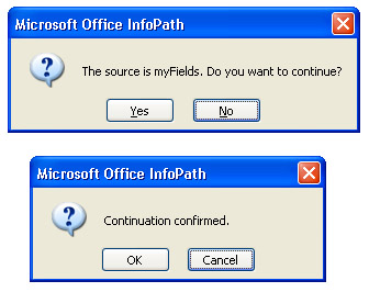 The UI object s Confirm method provides the visual equivalent of a Windows forms message box and offers a choice of OK/Cancel, Yes/No, or Yes/No/Cancel buttons . You can use the return value of the message box to control program flow with an If ... Else ... End If construct. To change the alert to a confirmation message box, replace the alert statement you added in step 9 of the preceding procedure with the following statements or add them from Confirm.txt: