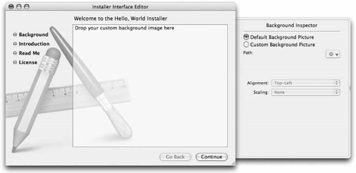 Show Installer Interface Editor Used to customize the installer interface's background image, Introduction blurb, Read Me, and License. This is shown in Figure 15-2.