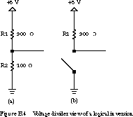Now suppose that R2 is a variable resistor with two basic settings: low resistance or very high resistance. When the pull-down resistor has a sufficiently high resistance, it behaves like an open circuit, as shown in Figure B.4(b). The output node reaches 5 V.