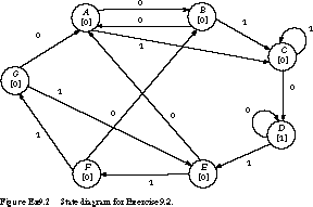 1. (State Reduction) Use the implication chart method to reduce the 4-bit string recognizer state diagram of Figure 9.2. (State Reduction) Given the state diagram in Figure Ex9.2, obtain an equivalent reduced state diagram containing a minimum number of states.