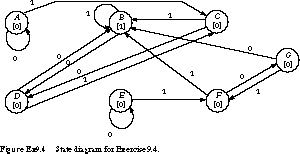 4. (State Reduction) Given the state diagram in Figure Ex9.4, draw the fully reduced state diagram. State succinctly what strings cause the recognizer to output a 1.