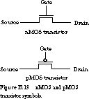 There are two fundamentally different kinds of MOS transistors, called n-channel and p-channel transistors, or nMOS and pMOS for short. Their schematic symbols are shown in Figure B.13.