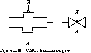 at 1 has the same effect on the pMOS transistor. In circuit diagrams, the transmission gate is often denoted by a "butterfly" or "bow tie" symbol, as shown in the figure.