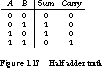 TRUTH_TABLE ([A, B] -> [Sum, Carry]) [0, 0] -> [0, 0]; [0, 1] -> [1, 0]; [1, 0] -> [1, 0]; [1, 1] -> [0, 1];
