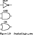 (NOT), AND, and OR functions, whose corresponding gate-level representations are given in Figure 1.20. Logic gates are formed internally from transistor switches (see Exercise 1.12).