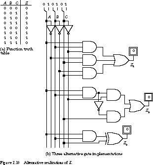 You could implement the same truth table with fewer gates. An alternative two-level implementation is given in Figure 2.9(b) as function Z1: