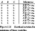 We can write such expressions in a shorthand notation using the binary number system to encode the min-terms. Figure 2.15 shows the relationship between the truth table row and the numbering of the min-term.