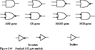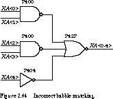Look back at the three implementations of the function Z in Figure 2.9. Implementing Z1 in TTL requires three packages: one package of inverters, one package of three 3-input AND gates, and one package of three 3-input OR gates. Z2 also uses three packages: one package of inverters, one package of four 2-input AND gates, one package of four 2-input OR gates. But Z3 needs only two packages. Once again, Z3 is the most area-efficient design.