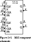 Conventions for MSI components are less rigid, but the following are typical. Functions are represented by blocks with input/output signals rather than discrete gates. Figure 2.61 contains a schematic symbol for the 74112 dual J-K flip-flop, a 16-pin TTL component that will be introduced in Chapter 6.