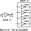 At times, you will use different instances of the same set of gates in several places in your schematic. The best way to handle this is to draw the gates once, then box them in with a dashed line and label them with a detail letter, as in Figure 2.62.