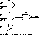 To make it easier to deal with inverting logic, we think about signals in two separate ways, both of which are reflected in the convention for signal names. The first element of a signal name indicates its function: LOAD PC, or XA<0> AND XA<1>. The second gives the signal's polarity as either high (.H) or low (.L). An .H or .L polarity indicator is added to every signal name to indicate whether its function occurs when the -signal is 1 or 0. For example, in Figure 2.63, the signal XA<0>_AND_XA<1>.L is at a low voltage ("true") when both XA<0> and XA<1> are at high voltages (also "true"). Thus, the signal is given an .L polarity. If an AND gate had been used instead of NAND, the polarity would be .H. If a signal is not marked with a polarity indicator, it defaults to positive logic. To be absolutely clear, it is a good idea to mark all signals explicitly.