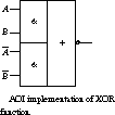 Implementing Logic with AOI and OAI Blocks Let's start with a simple example. We will implement the XOR function using AOI blocks. Recall that XOR's behavior is described by the equation![]()