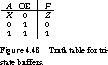 Figure 4.58 shows two different TTL tri-state buffer components. The 74240 octal buffer with three-state outputs is organized into two independent 4-bit sections, each with its own enable, data inputs, and data outputs. The enable inputs are