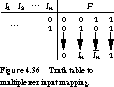 General Concept Figure 4.27 gives a "functional" truth table on the left and a more conventional truth table on the right for a multiplexer with two data inputs, I0 and I1, and one control input, A. Both communicate the same information, but the functional truth table is much easier to write down. It really communicates the idea that we are passing a selected input to the output, independent of the value of that input. Restated as a Boolean equation, the two-input multiplexer can be described as![]()