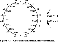 The number wheel representation of the 4-bit ones complement number system is shown in Figure 5.2.