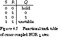 We summarize the behavior of the cross-coupled NOR gates in the functional truth table of Figure 6.7.